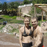 We spent our last full day in South America similar to the first: absolutely certain we were on vacation, basically in the lap of luxury. We went to a small spa located in the foothills of the Andes, glorious views, naturual hot springs, friendy staff. We treated ourselves to a massage, 2 mud baths, and dips in all the pools (varying temperatures). Lunch was a feast (alas, of mostly meats, but Becky enjoyed the other stuff, too). It's hard to imagine doing less. We brought books and postcards and journals, but none of them even got opened.